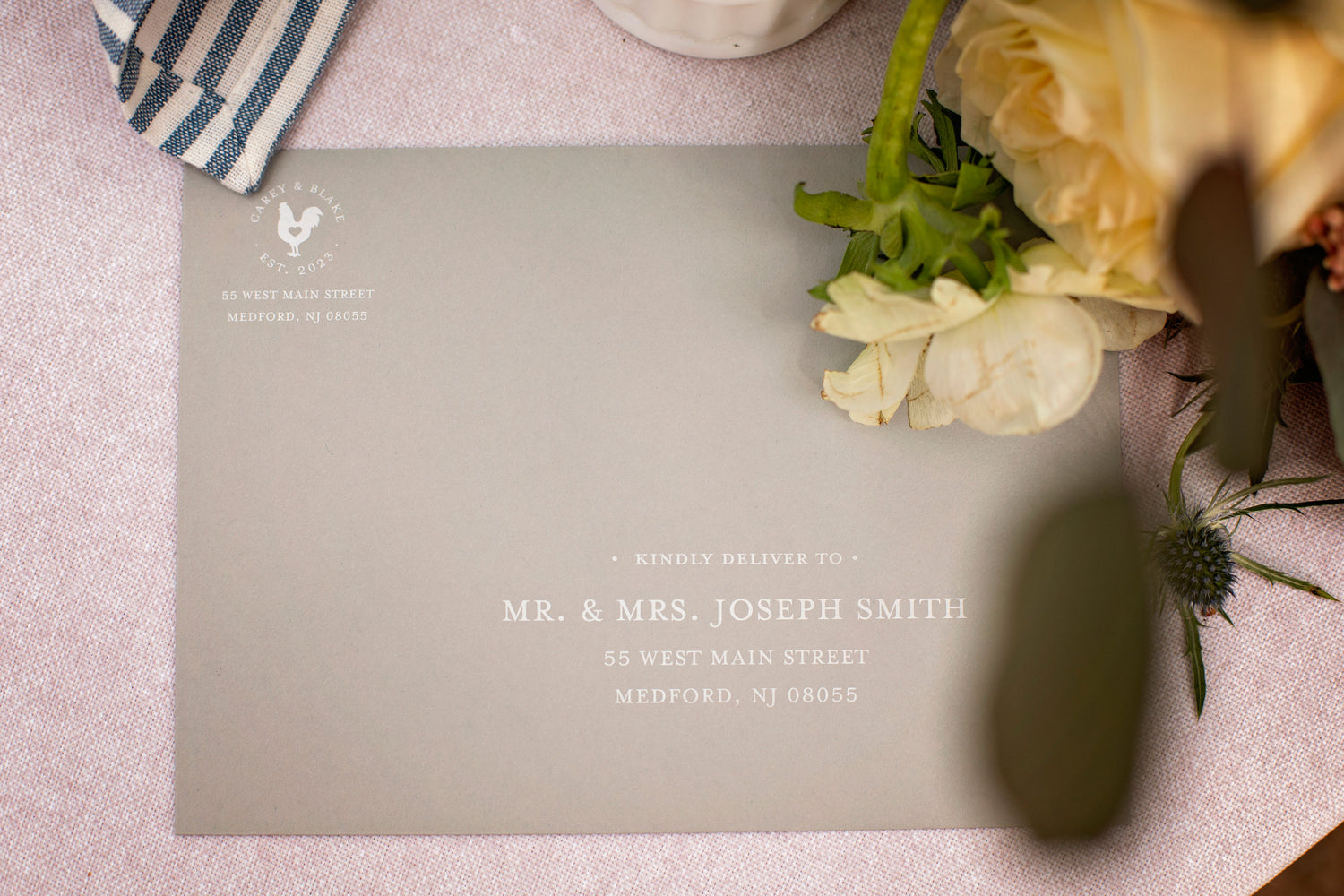 You'll be able to select your desired design to incorporate into your invitation and day of stationery. With every invitation order you'll receive a .png file with a transparent background of your monogram to use in other elements of your celebration.