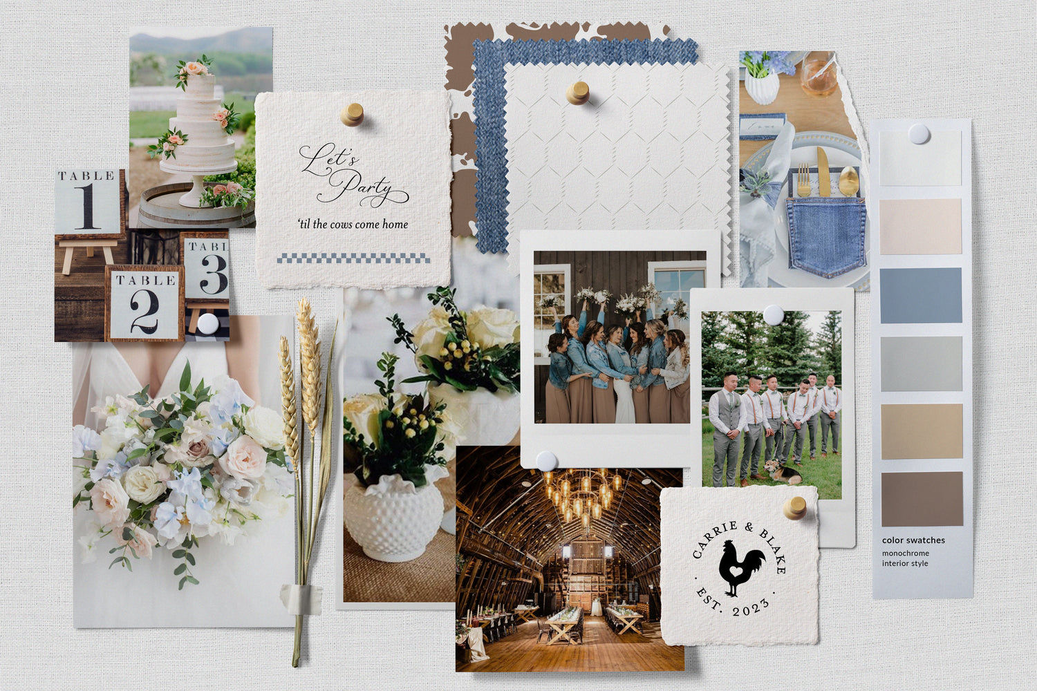 I combine one-of-kind design with your vision to craft the details that will delight your guests. I love to get lost in color swatches and searching for the perfect pairing of fonts and graphics to achieve the vibe you are going for.