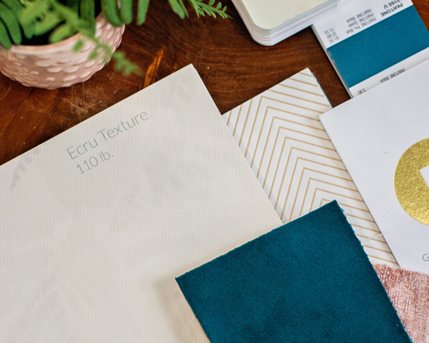 This suite is professionally printed on a digital press using a Ultrawhite Eggshell Cardstock