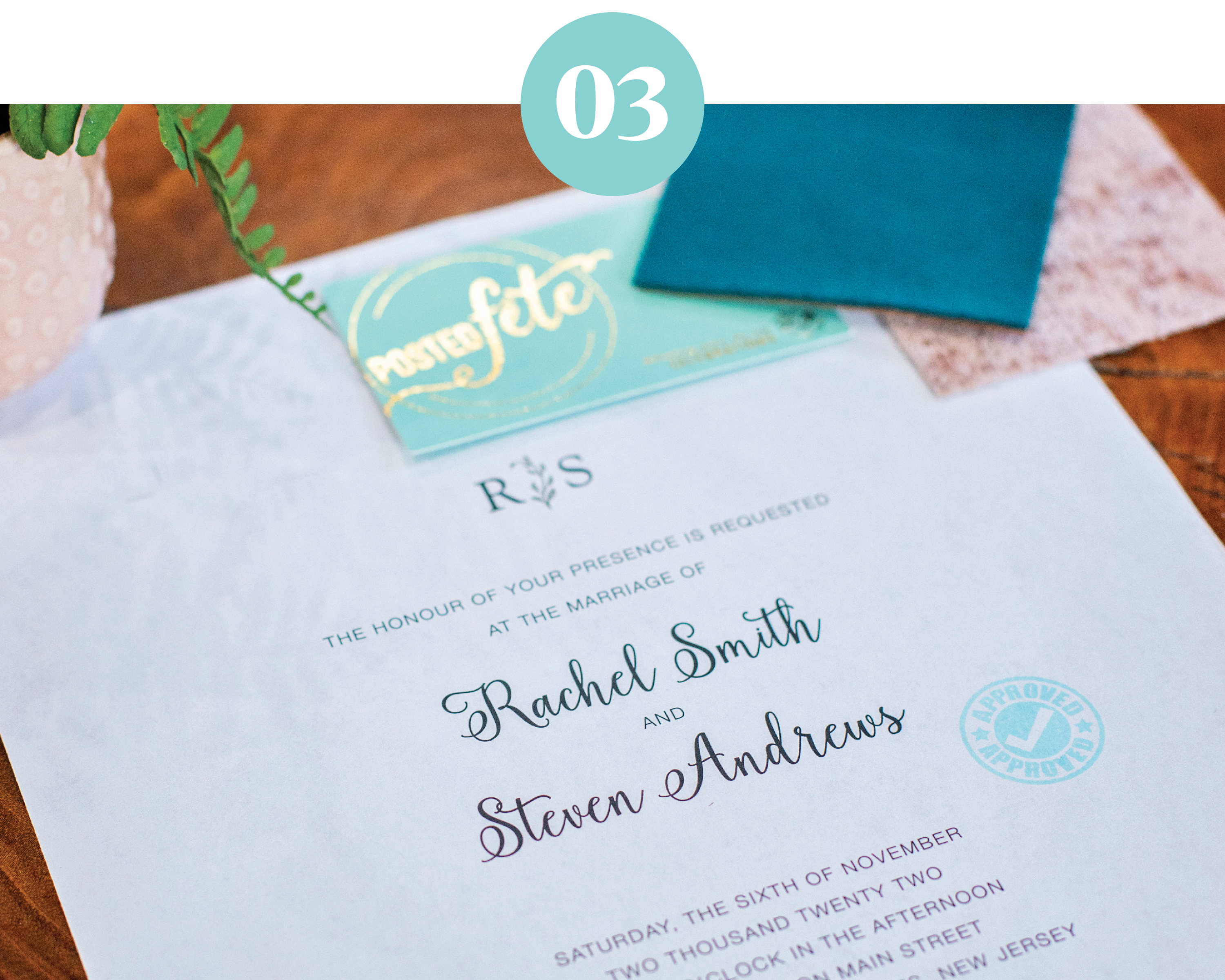Our designer Stephanie will work with you one-on-one to infuse your personality and style into this invitation suite.